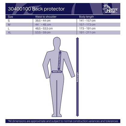 Verkrijgbaar in de unisex-maten S, M, L, XL (volwassenen). De lengte van de rugbeschermer heeft betrekking op de gehele lengte van de wervelkolom.